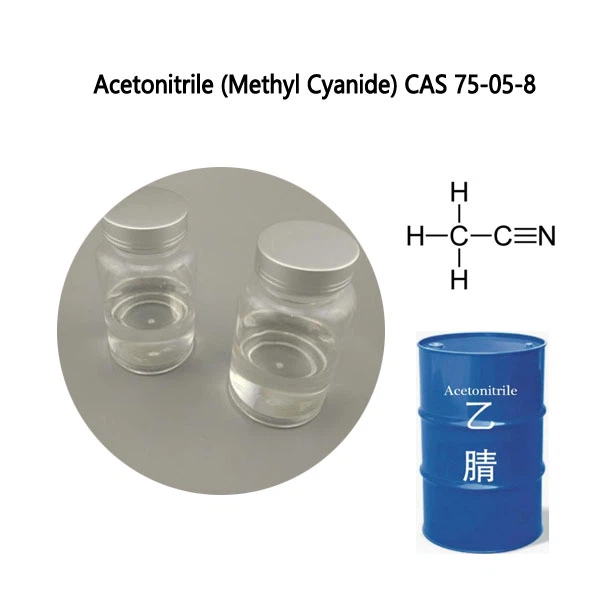 Acetonitril (ACN) även känd som metylcyanider, färglös vätska, flyktig, har en speciell lukt som liknar eter, har utmärkt lösningsmedelsprestanda, kan lösa upp en mängd olika organiska, oorganiska och gasformiga ämnen. Det är giftigt och oändligt ömsesidigt lösligt med vatten och alkohol.