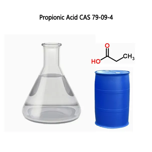 Kemiska egenskaper: Propionsyra är en klar, färglös vätska som kokar vid 140 grader (284 OF). Det är brandfarligt. Den har en stickande lukt och är löslig i vatten och alkohol. Lukttröskeln är 0,16 ppm.